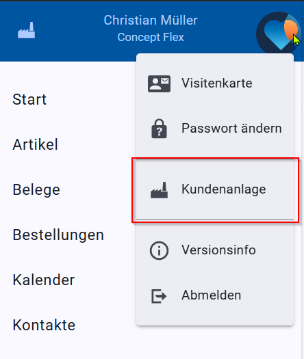 Über die neue Funktion "Kundenanlage", im Menü