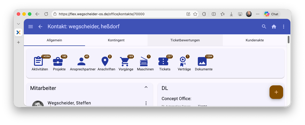 Mit eigenen Gadgets haben Sie die Möglichkeit, individuelle Informationen in Concept Flex darzustellen. Sie können beispielsweise individuelle Recherchen mit Platzhaltern am Kontakt / Vorgang anzeigen (z. B. Umsatz pro Warengruppe im Vorgang) oder externe Homepages direkt in Concept Flex darstellen.