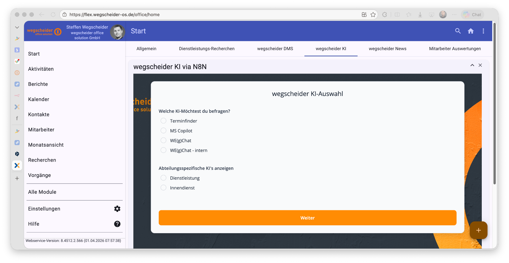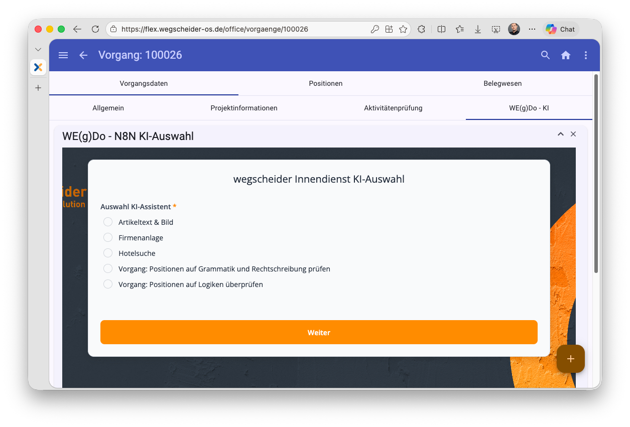 Anhand des folgenden Screenshots sehen Sie einen individuellen KI-Assistenten, welcher mit einem freien Gadget in unser Concept Flex integriert wurde:
