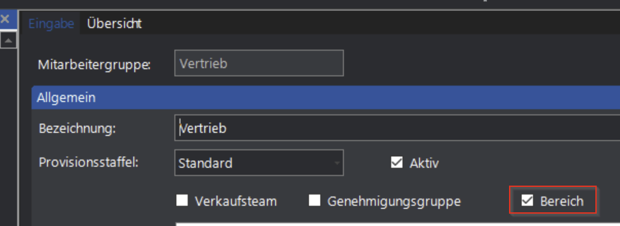 Die Benutzergruppen müssen hierzu im Vorfeld angelegt werden, siehe "Bereiche / Mitarbeitergruppen". Um Gruppen-Gadgets hinterlegen zu können, muss in der Rechteverwaltung das Recht 419 'Tab- und Gadgeteinstellungen bearbeiten' aktiviert werden. Die Standardeinstellung ist 'Nein'. Zudem muss in der Mitarbeitergruppe der Haken ''Bereich'' angehakt werden, dass die Gruppe die Gruppe in Concept Flex sichtbar wird.