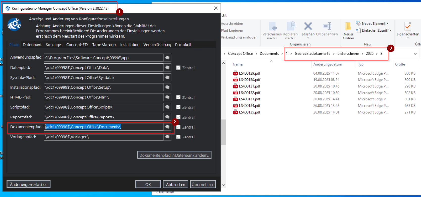 Werden Lieferscheine über Concept Flex abgezeichnet, so legt Concept Office automatisch eine unterschriebene Kopie des Lieferscheins als PDF ab. Diese Dokumente können Sie bei sich im zentralen Concept Office Verzeichnis finden.