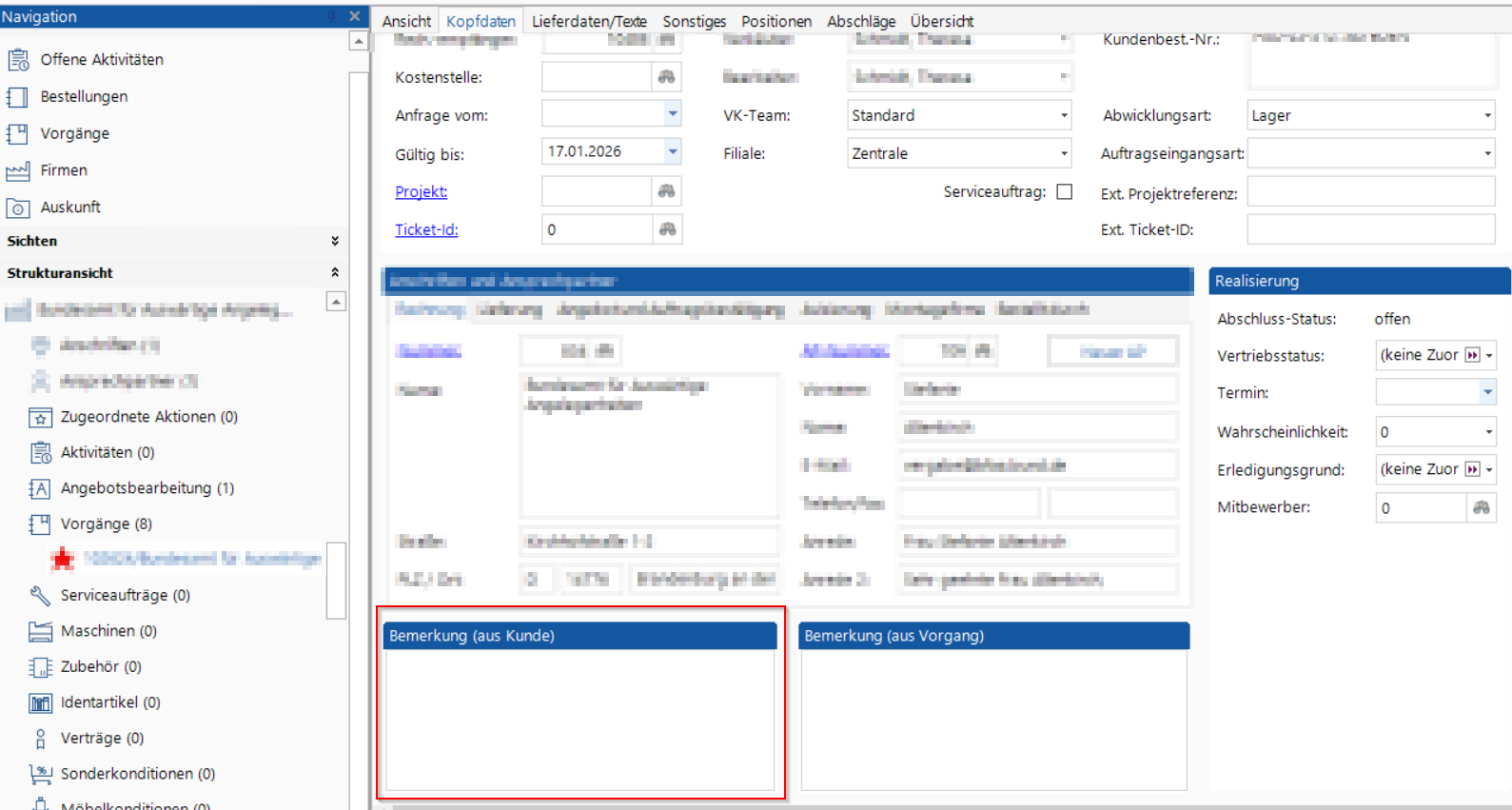 Im Vorgang ist auch dieses Feld zu kontrollieren.