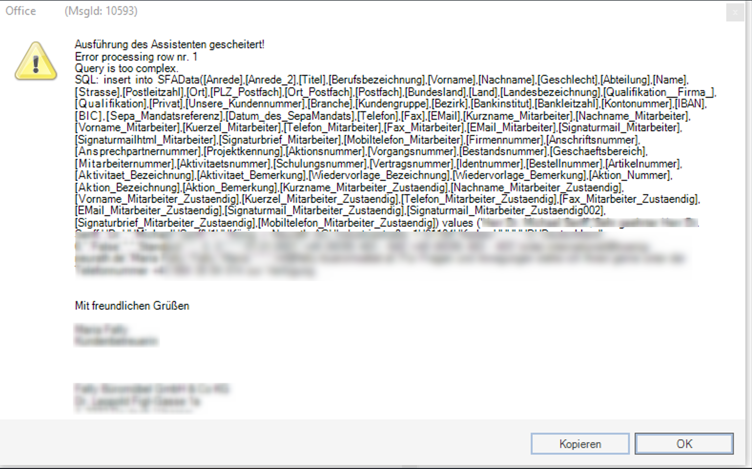 Man möchte aus Concept Office 7 Daten exportieren (z.B. Ansprechpartner) und bekommt dann folgende, oder ähnliche, Fehlermeldung:Ursache: