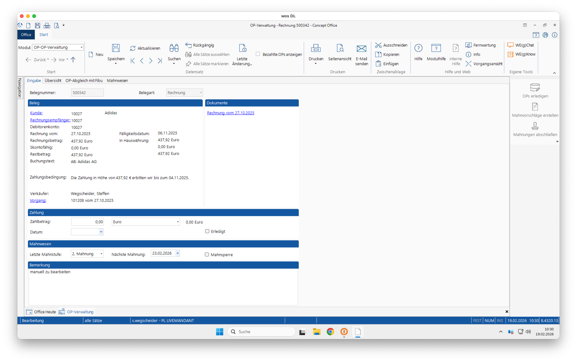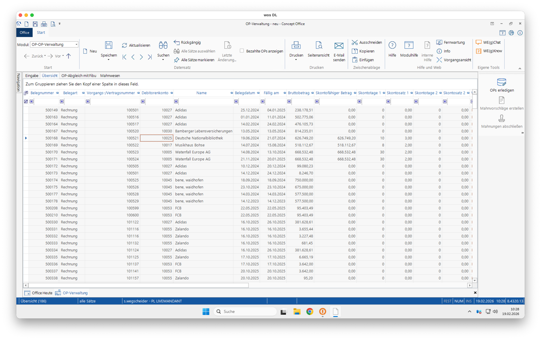 Das Modul "OP-Verwaltung" erfordert keine Lizenz, der manuelle OP-Abgleich ist Bestandteil von Concept Office.