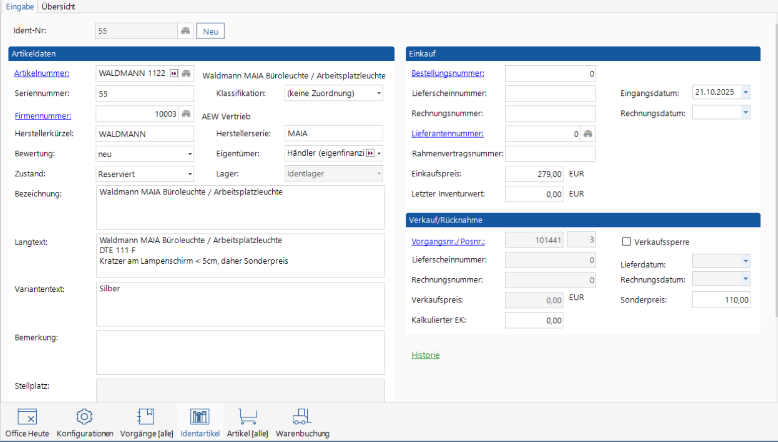 📌 Jeder Identartikel hat eine eigene Identnummer, kann individuell bezeichnet, bewertet und verkauft werden.