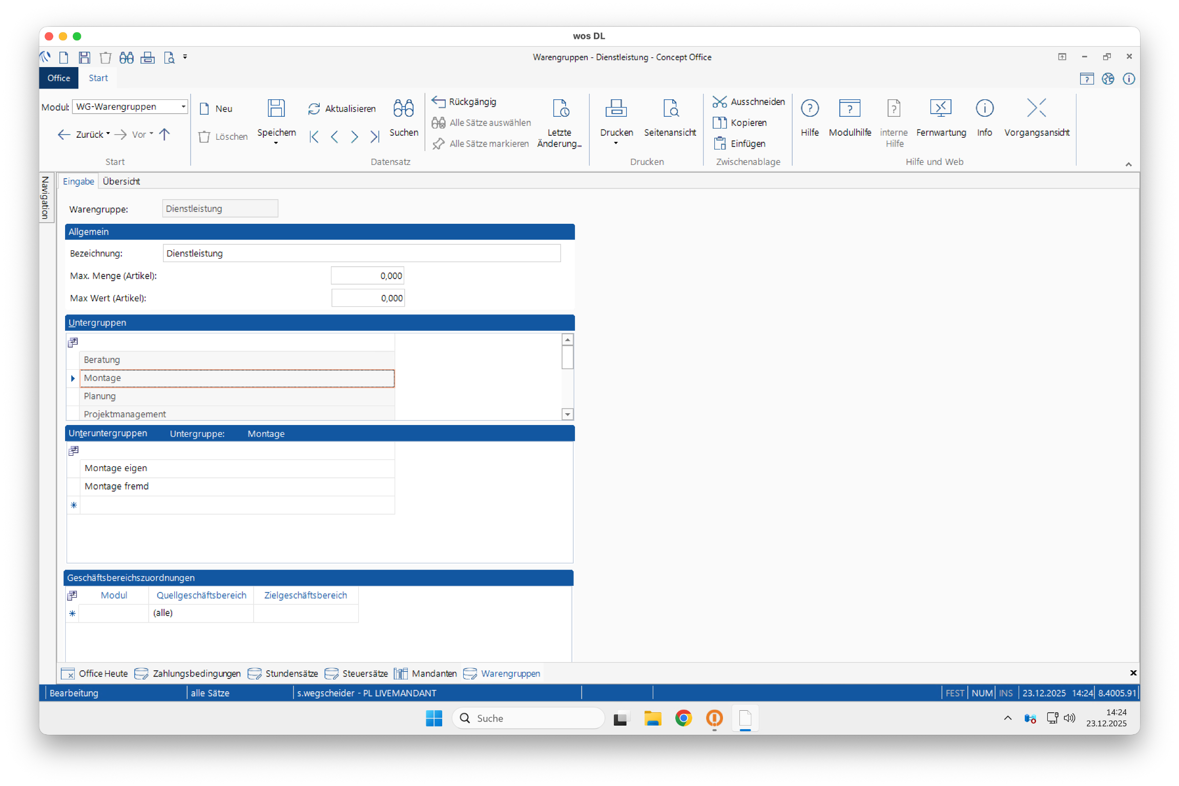 - Pro Warengruppe können Sie Waren-Untergruppen definieren