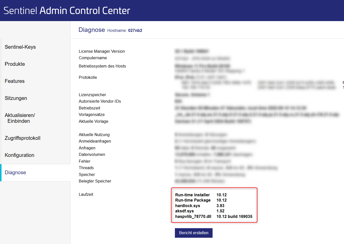 Ist die Installation abgeschlossen, können Sie den Versionsstand Ihres Lizenztreibers überprüfen. Hierfür öffnen Sie über Ihr Windows-Startmenü die Lizenzverwaltung > Verwaltung > Diagnostics: