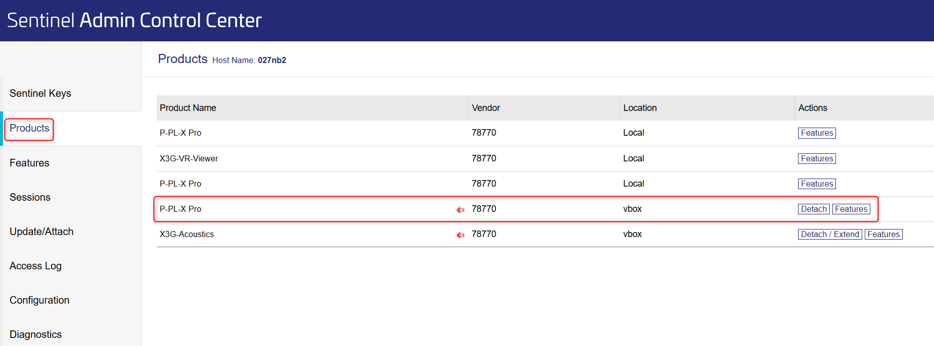 nun in der Zeile P-PL-X Pro auf den Button 'Detach / Extend' (falls dieser Button bei