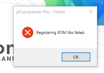 Die Fehlermeldung "registering EOM libs failed" weist darauf hin, dass eine Systembibliothek fehlt.