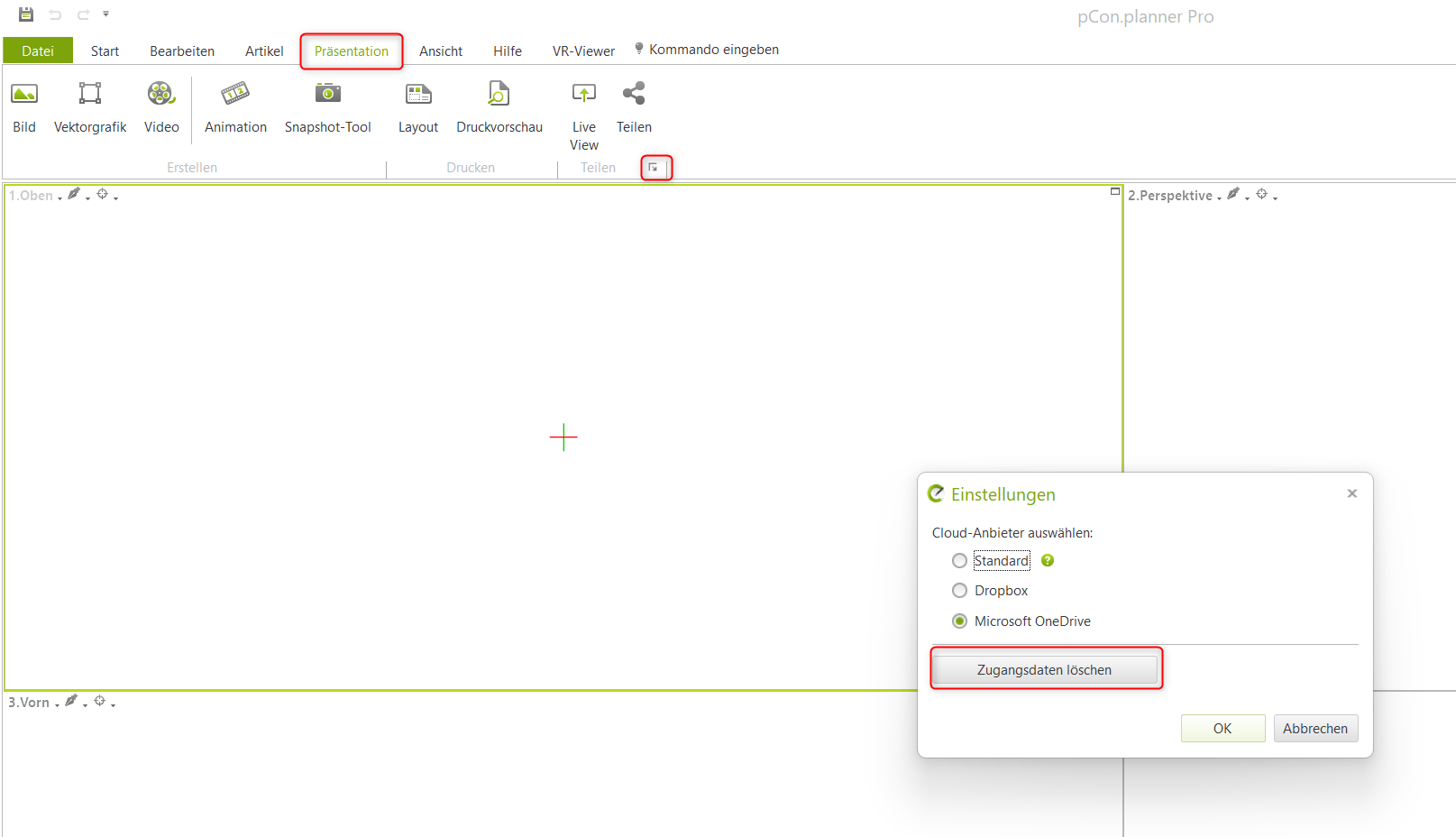 in dem Sie Ihren Cloud-Anbieter auswählen können. Gehen Sie dort auf "Zugangsdaten löschen".